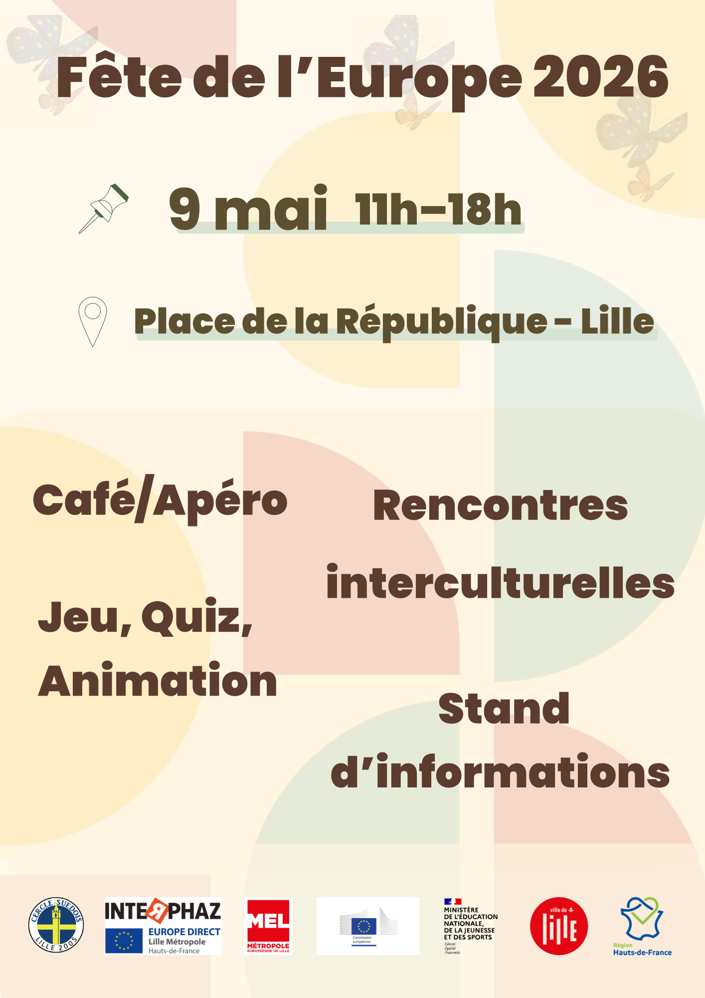 Le 9 mai 2026, le Cercle Suédois de Lille participera à la Fête de l’Europe, organisée par Interphaz Europe Direct — Europe Direct Lille Métropole, en partenariat avec la Ville de Lille et le Bureau de Liaison du Parlement européen.